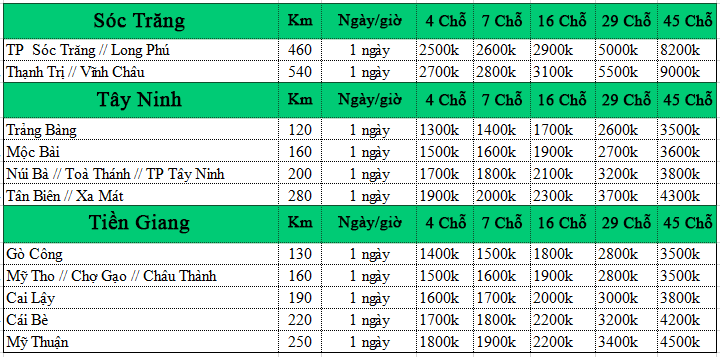 Báo giá dịch vụ xe 4 – 7 – 16 chỗ có tài xế trọn gói, xe tiện chuyến :