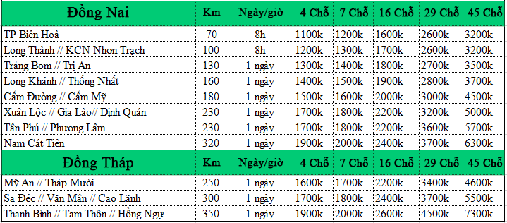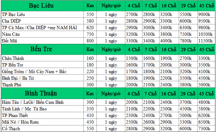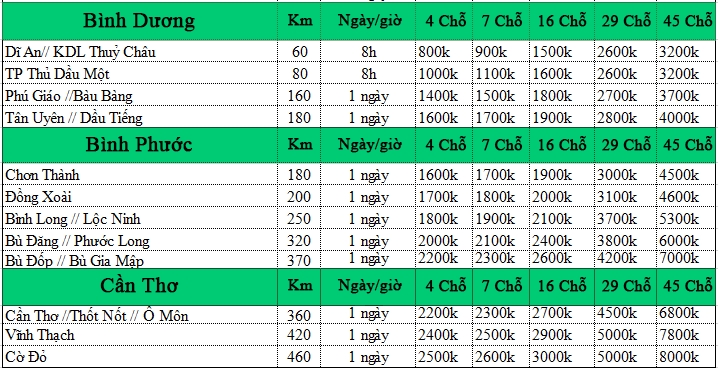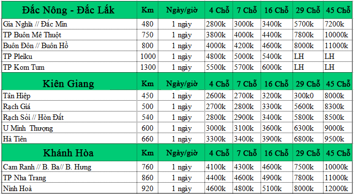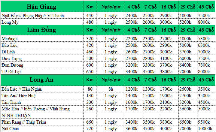 Báo giá dịch vụ xe 4 – 7 – 16 chỗ có tài xế trọn gói, xe tiện chuyến :